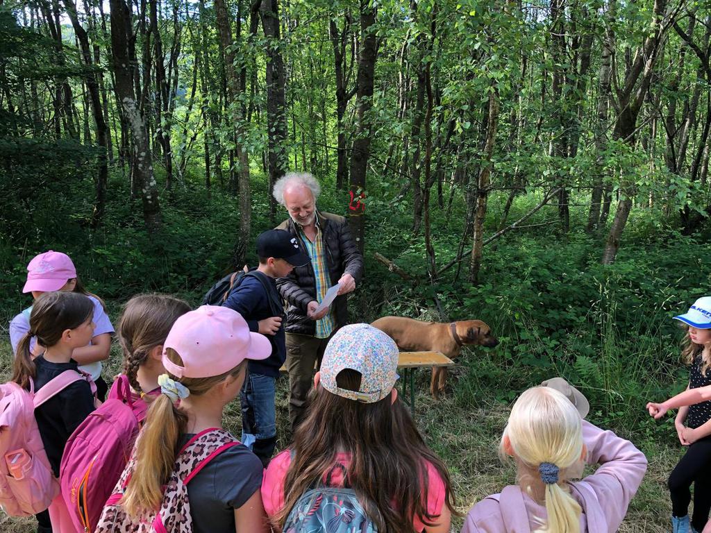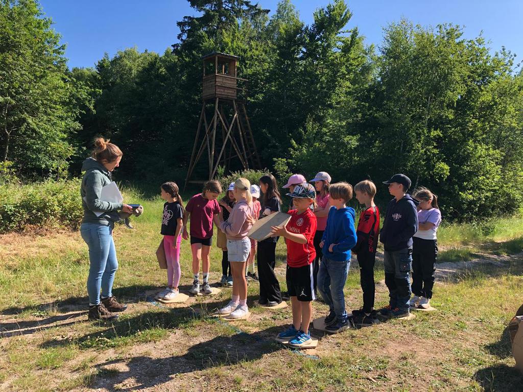 Am 24.06. fuhr unsere Klasse mit 25 anderen Klassen in den Binger Wald zu den Waldjugendspielen. Unsere Nachbarklasse war auch dabei. Wir wanderten mit einem Förster einen schönen Weg durch den Wald und hielten bei 11 Stationen an: Bei den ertsten beiden Stationen ging es um die Nachhaltigkeit des Waldes. Anschließend gab es ein Spiel, bei dem man Karten in die richtige Reihenfolge bringen sollte. Nun gab es ein Siebenschläferspiel und viele andere Aufgaben. Die Siegerehrung verschob sich nach hinten und deswegen gingen wir in die Steckeschläfer-Klamm. Endlich kam die Siegerehrung. Jedes Kind bekam einen Eintrittsgutschein für den Rheinböller Tierpark. Das war schön!