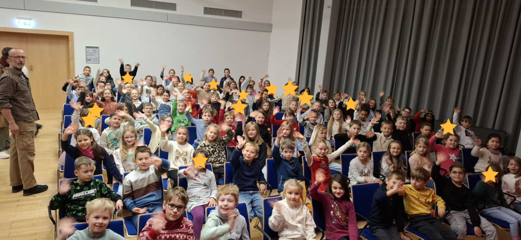 Am 05.12.2025 besuchten wir als Schulgemienschaft das Theaterstük "Aladdin" in Bingen. Dank unseres Fördervereins und dem Rotary-Club, die gemeinsam die gesamten Kosten für Eintritt und Busfahrt übernommen haben, konten wr vollkommen ohne Eigenanteil der Familien das Stück genießen. Es war ein kurzweiliger Vormittag, der viel Spaß bereitet hat und die Schulgemeinschaft gestärkt hat.