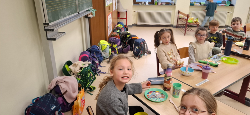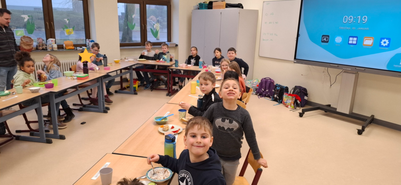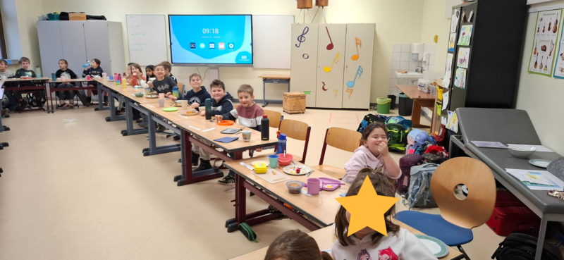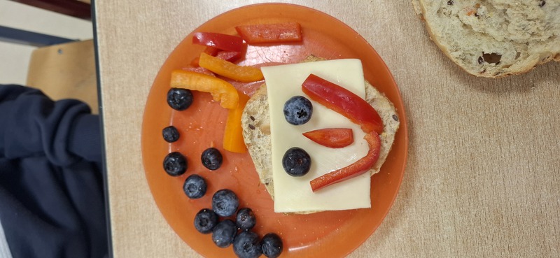 Am 30.01.2026 veranstalteten die Kinder der zweiten Klassenstufe ein gemeinsames gesundes Frühstück. Dafür beschäftigten sich die Kinder im Vorfeld mit der Ernährungspyramide der BzfE und deren Aufbau. Am Freitag brachten die Schülerinnen und Schüler dann passende Lebensmittel mit und sortierten sie den Lebensmittelgruppen und den Bausteinen für ein "Pyramidenfrühstück" zu. Anschließend ließen es sich alle gut schmecken und kreierten lusitge Brotgesichter.