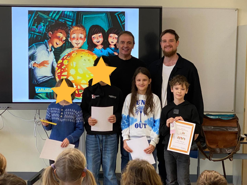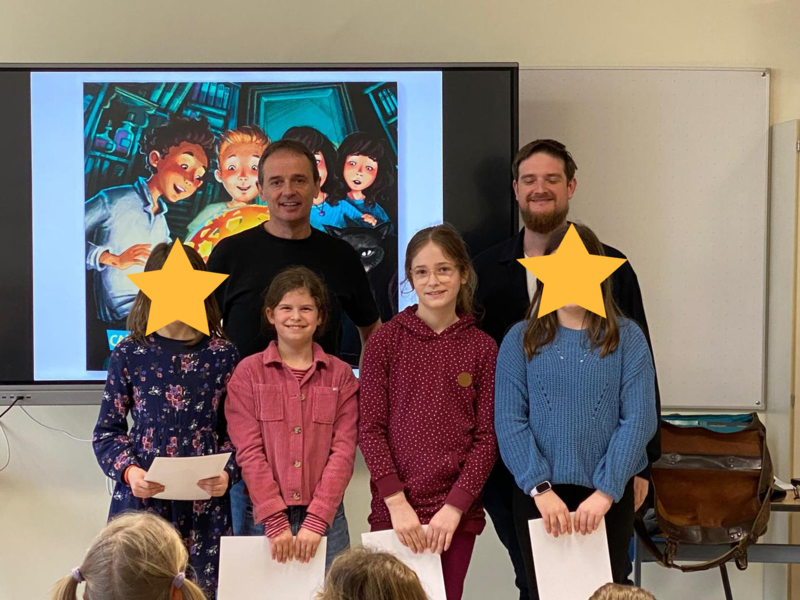 Natürlich war die Spannung am Ende des Vormittags groß, wer denn nun die Gewinner sind! Allerdings mussten sich die Kinder noch einige Tage gedulden, denn die Bekanntgabe und somit die Preisverleihung wurde für einen ganz besonderen Tag aufgehoben: Der Besuch von Autor Stefan Gemmel an unserer Schule!