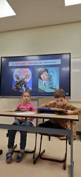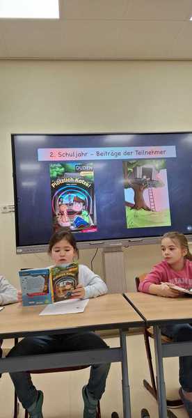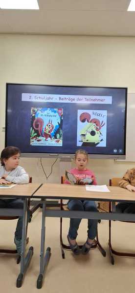 Auch dieses Schuljahr veranstalteten wir wieder einen Vorlesewettbewerb jeweils für die Klassenstufen 1/2 und 3/4. Die Kinder durften sich Zuhause darauf vorbereiten und einen eigenen Text zum Vorlesen mitbringen, mussten anschließend aber ihr Können auch an einem unbekannten Text beweisen. Die Jury bestand aus Lehrern, Frau Nickel-Schimansky unserer Leseförderkraft, und dem Wettbewerbsgewinner des letzten Jahres.